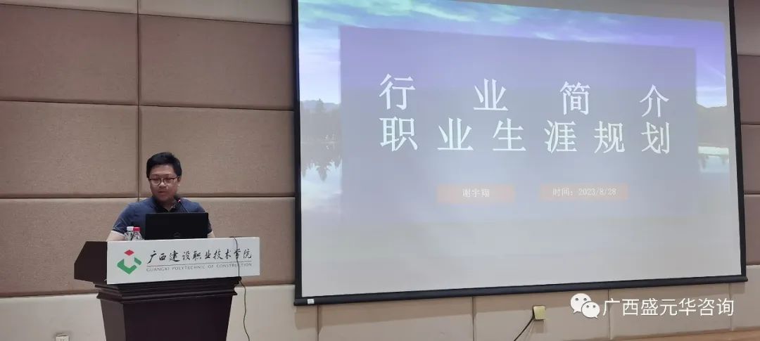 8月28日下午,受廣西建設職業(yè)技術(shù)學院管理工程學院邀約,廣西盛元華總經(jīng)理助理、總工程師謝宇翔出席參加了管理工程學院2023級造價班全體新生的開學第一課,并在課上向新生們做了關(guān)于職業(yè)培養(yǎng)的專業(yè)教育。